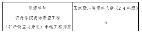 1.国家励志奖学金向资源勘查工程(矿产调查与开发)卓越工程师班每班倾斜1人。
