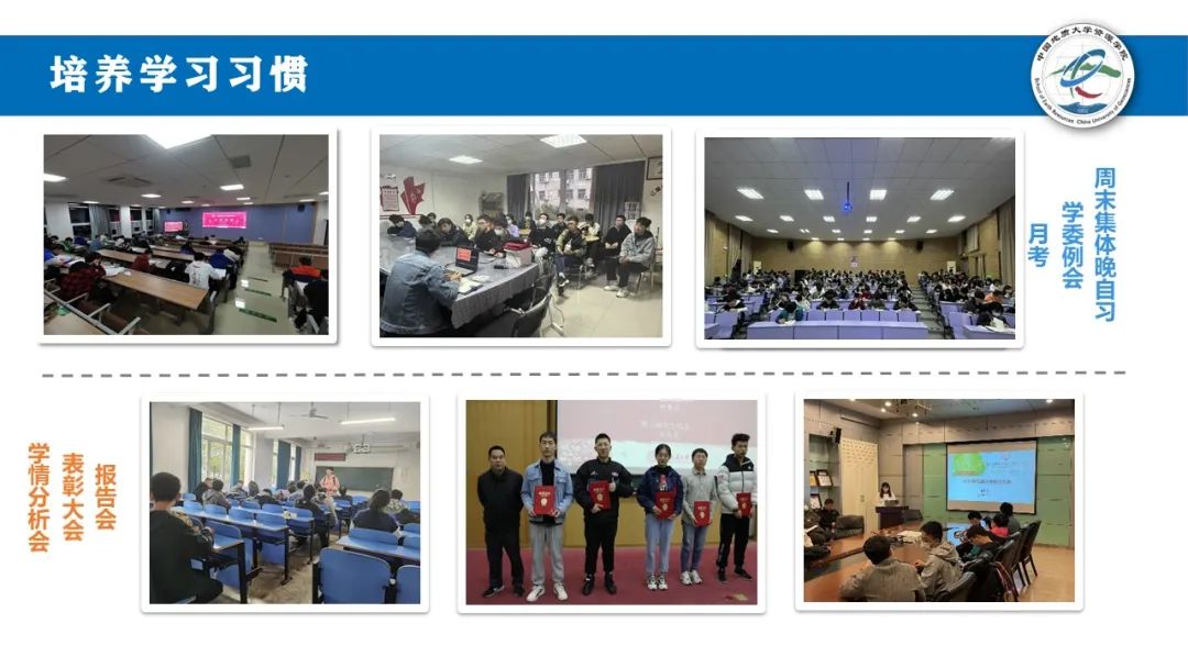 培养学习习惯。每周日的集体晚自习雷打不动,月考可能会迟到,但绝不会缺席;一月一次学情分析,两周一次学委例会,我们一起交流共进。