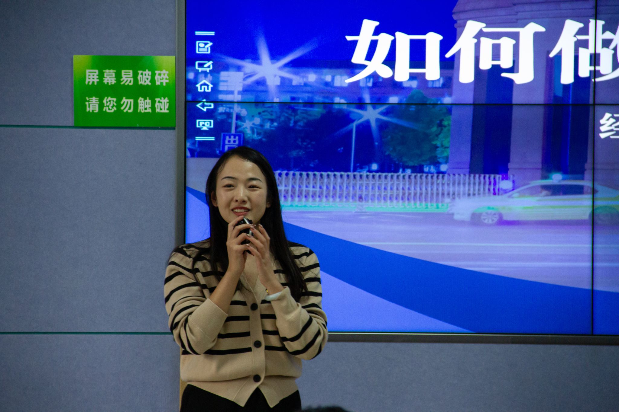 张恪以“张口能讲——学生骨干演讲与答辩能力提升”为题,她开场声情并茂的演讲在大家心里泛起层层涟漪,接下来她从内容、动作、选取背景音乐等多方面展示上台演讲或答辩的技巧和细节,她希望大家作为演讲者时能做到自信从容,展现出新时代青年的朝气,成功完成每一场演讲和答辩。