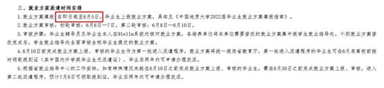 就业方案核对:初轮审核:6月6日—7日,第二轮审核:6月8日—6月10日。