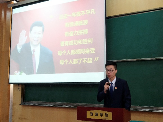 张建华致辞。他表示,过去一年,在学院党委的领导下和学校团委的指导下,学院团学组织紧紧围绕学院发展大局,充分发挥思想引领和服务学生成长成才职能,密切联系同学,竭诚服务同学,各项工作都取得了新进展。他希望,广大同学要永葆爱国之心、永存进取之志、勇攀科学高峰,与国家发展,学院发展同向同行,共同前进,为“美丽中国 宜居地球”建设贡献青春力量,书写更加绚丽的青春篇章。