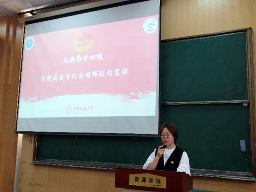 学院团委书记刘明辉致闭幕辞。她希望全体代表以这次大会的精神为动力,树立起强烈的历史责任感,发扬“求实奋进,勇攀高峰”的院风学风,践行“求是创新,厚德奉献”的资源人价值观,坚定理想信念,厚植爱国情怀,锤炼品德修为,为服务国家资源能源事业贡献力量。