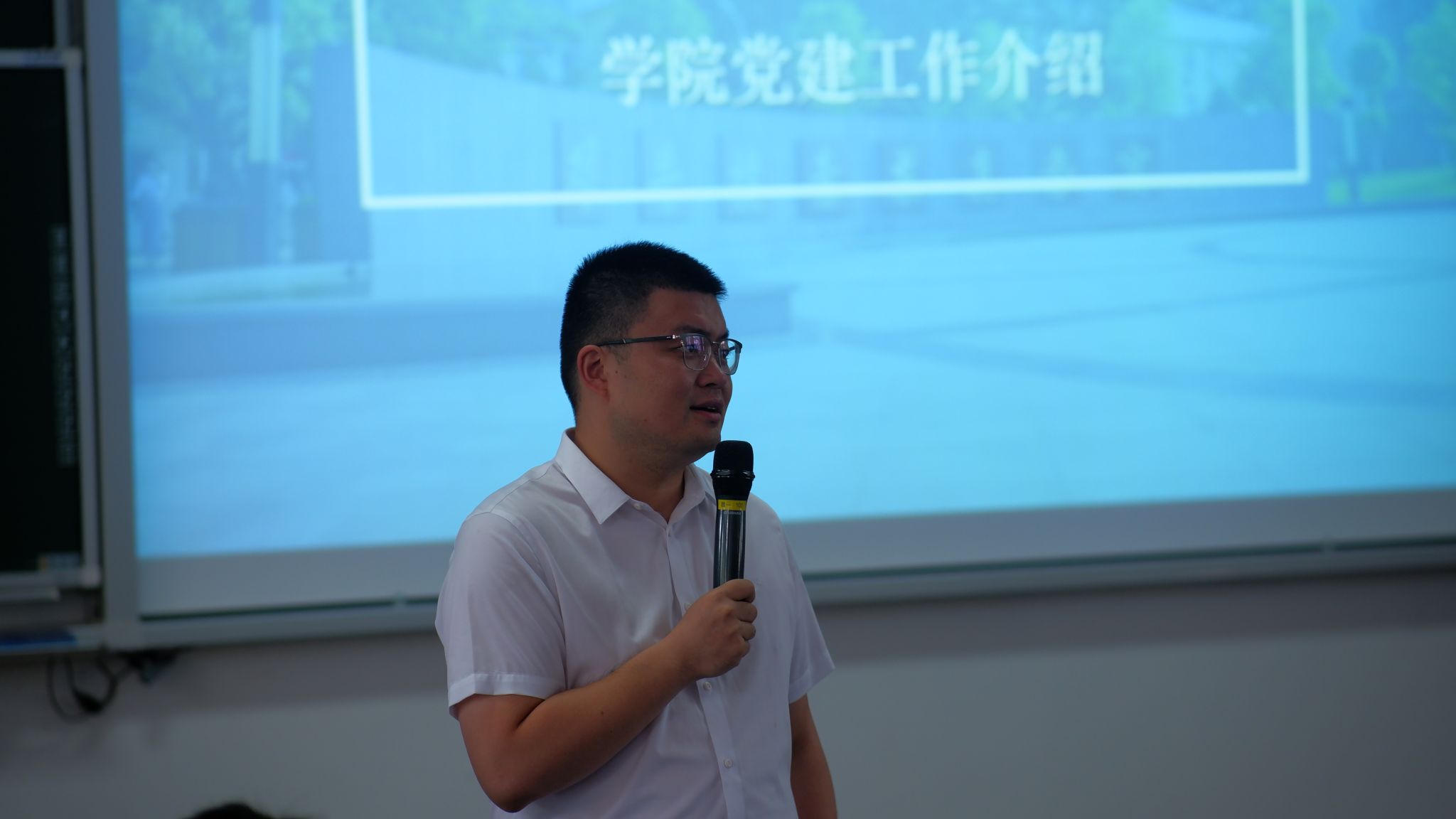 辅导员彭鑫介绍了学院党建工作情况,包括党组织架构、入党流程及党组织关系转接政策等。他鼓励新生们积极向党组织靠拢,坚定理想信念,多参加志愿活动,在学习和生活中发挥先锋模范作用,为实现中华民族伟大复兴贡献青春力量。