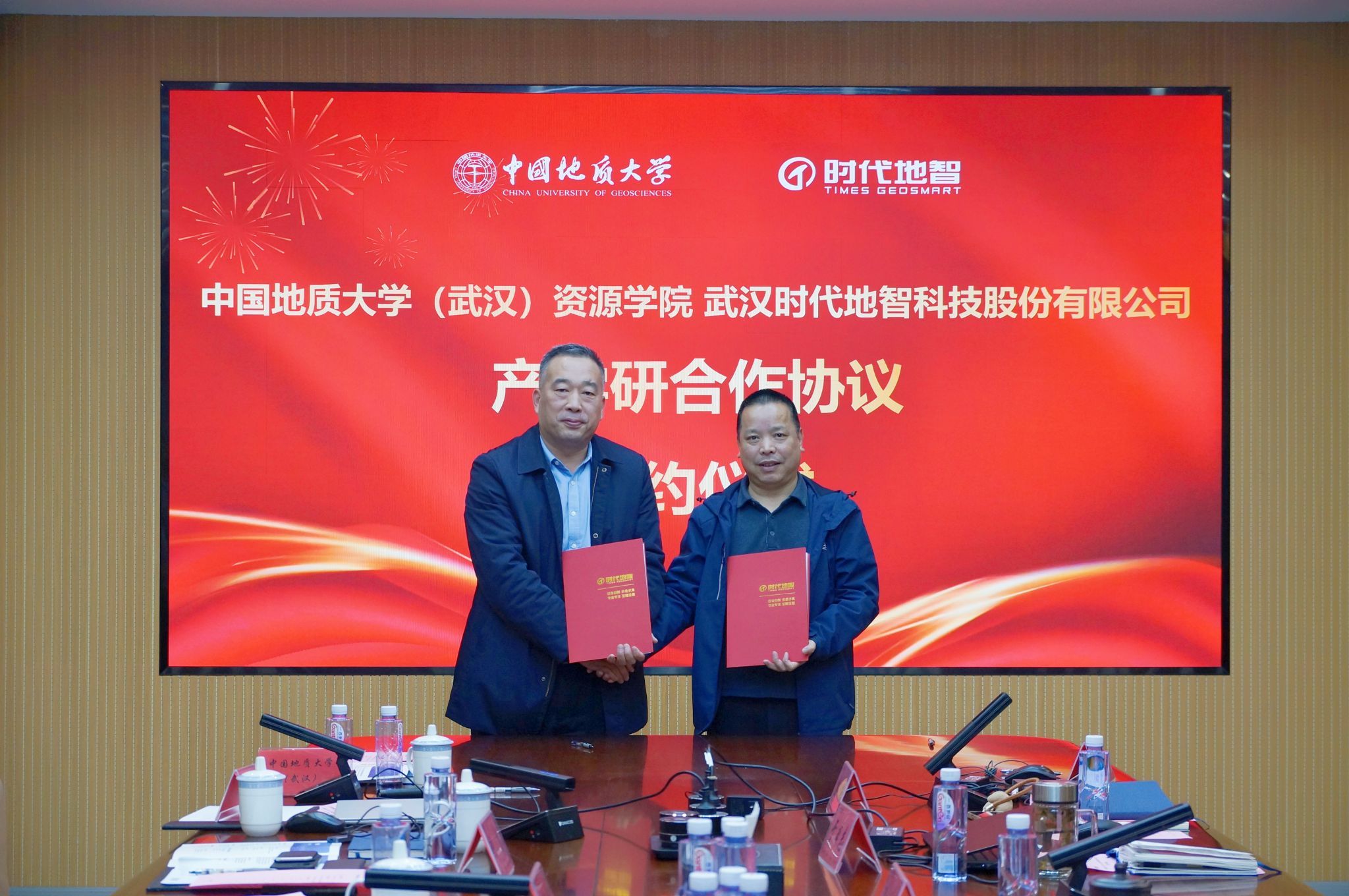 院长朱红涛一行赴武汉时代地智科技股份有限公司(以下简称“时代地智”)拓展产学研合作,签署合作协议,共建“地质e站”。“时代地智”党支部书记、董事长兼总经理夏震主持座谈交流。