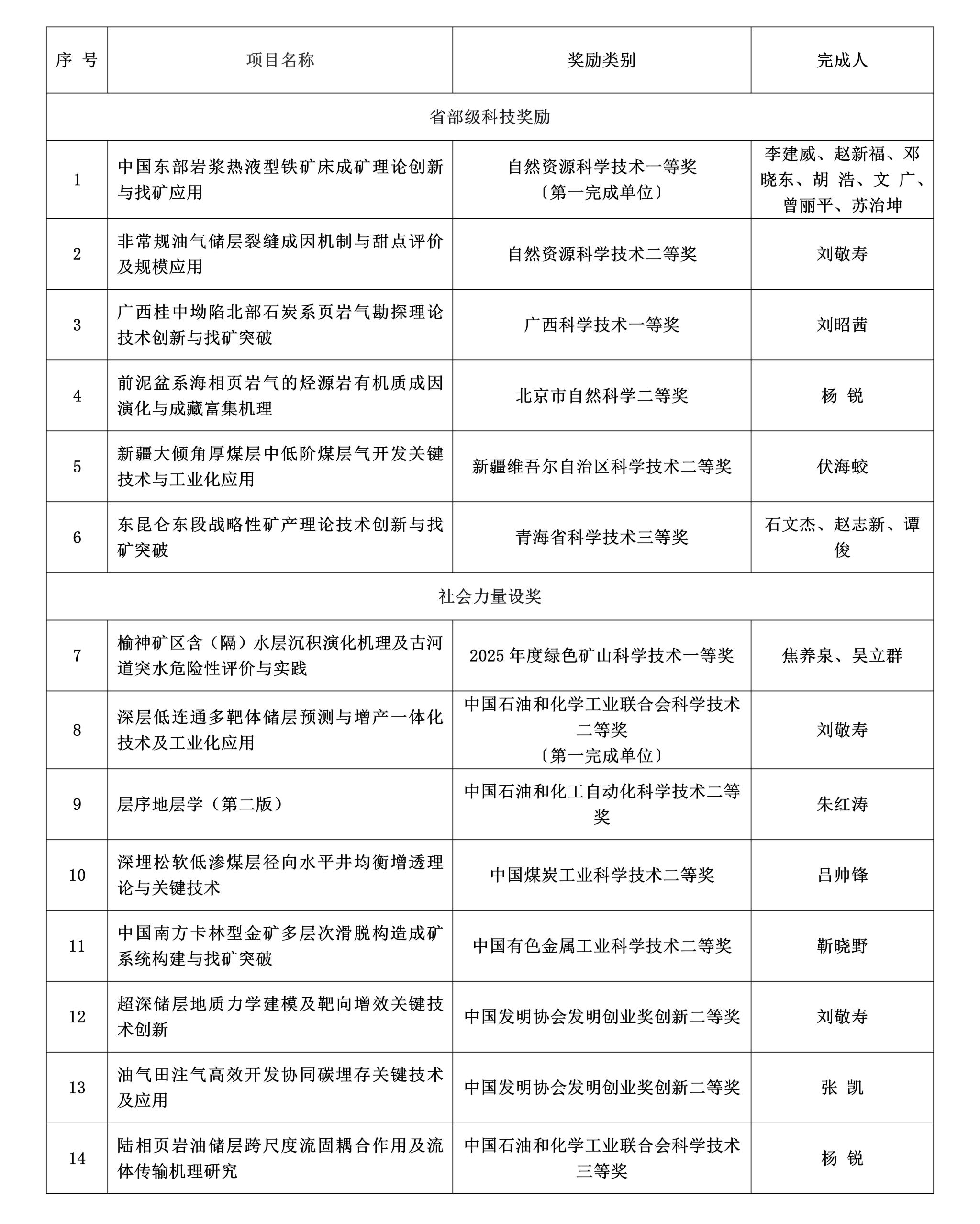 在油气资源勘查开发、战略矿产找矿突破、绿色矿山建设等领域取得标志性成果,2025年度共斩获14项重要科技成果奖,涵盖省部级科技奖励与社会力量设奖,日本av在线看