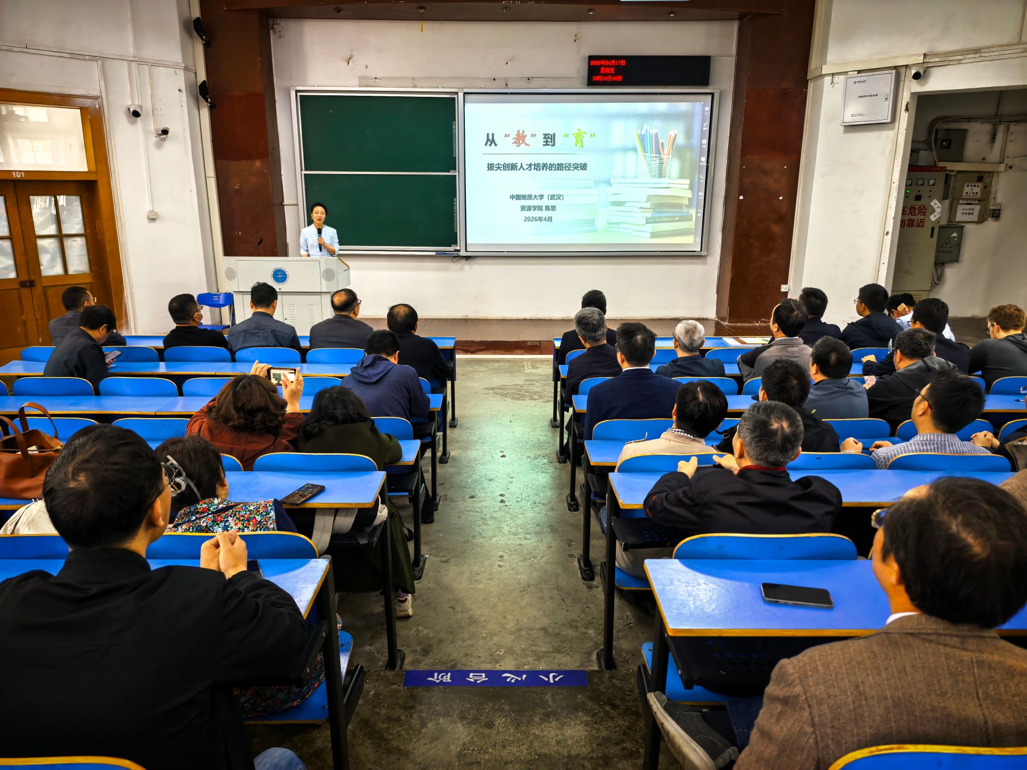 石油地质系副教授陈思作题为“从‘教’到‘育’:拔尖创新人才培养的路径突破”的专题报告。她谈到,关于高校人才培养,“十五五”阶段要培养的是能够破局、引领未来的创新型人才,而不仅仅是善于回答既定问题的应试者。教师要敢于实现角色转变,从单一的知识传授者转向学生成长成才的培育者和环境营造者,从提供标准答案转向为学生打造自由探索、勇于创新的沃土,给学生试错的机会,鼓励学生发散思维、创新思考,切实提高学生的科研素养、思维能力和学术兴趣。