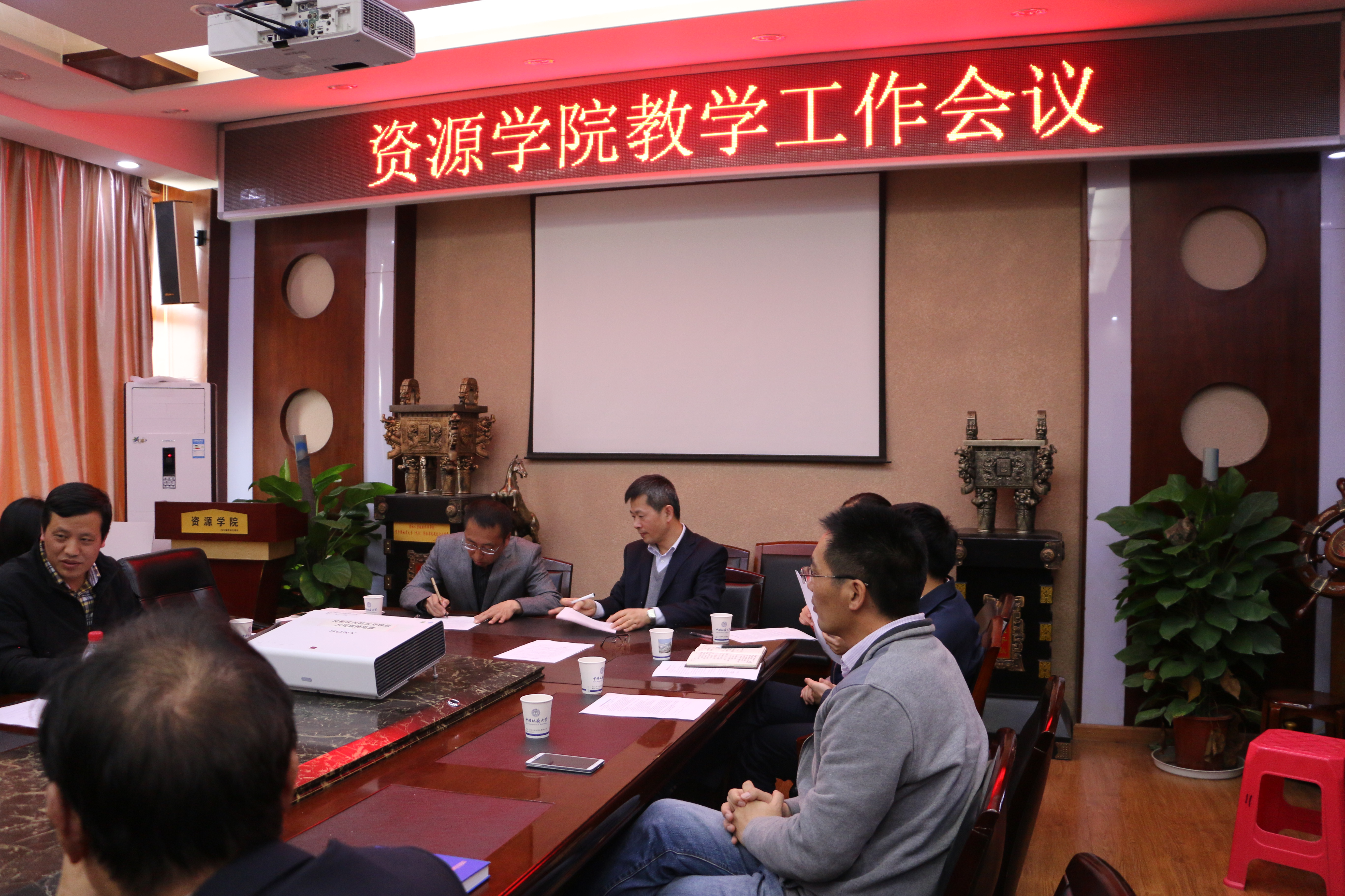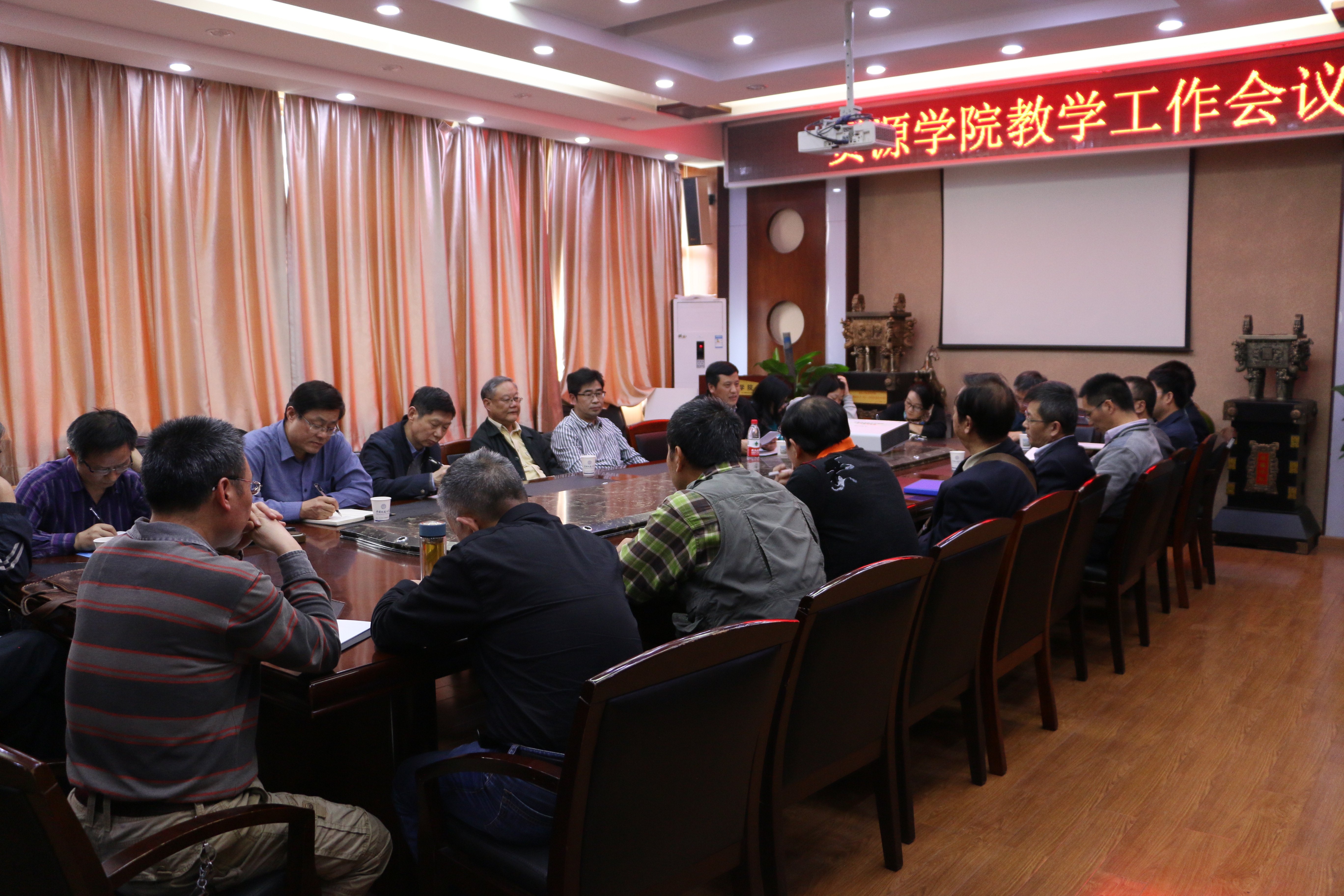 在主楼328召开专业建设负责人、实践教学团队负责人和教学督导员聘任会议。李建威院长、郭秀蓉书记、石万忠副院长、严德天副院长、张建华副书记、学院教学委员会成员、新聘任的实习基地教学团队成员、新聘任的专业建设负责人、新聘任的教学督导员以及各系教学主任及教学秘书参加了会议,石万忠副院长主持会议。