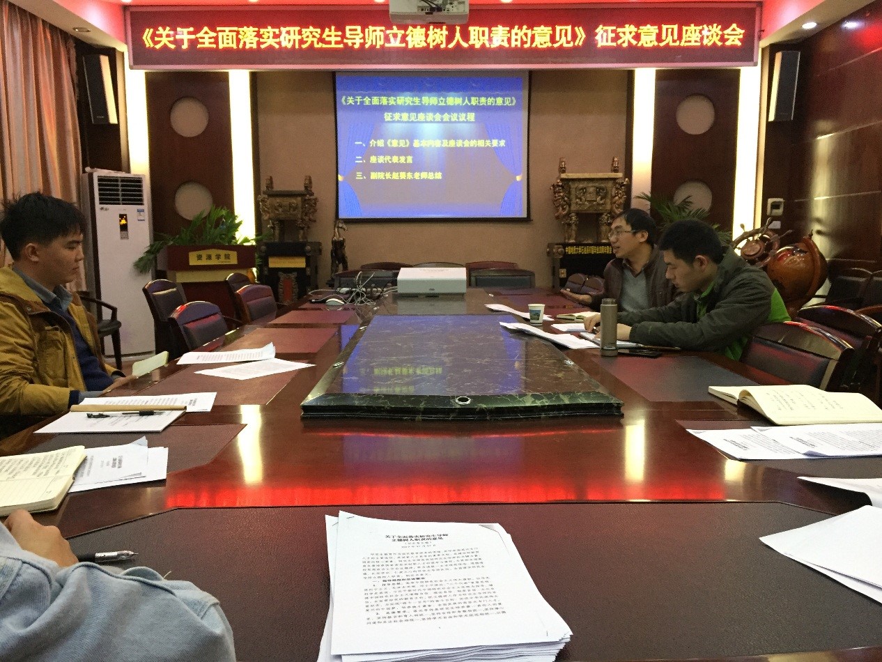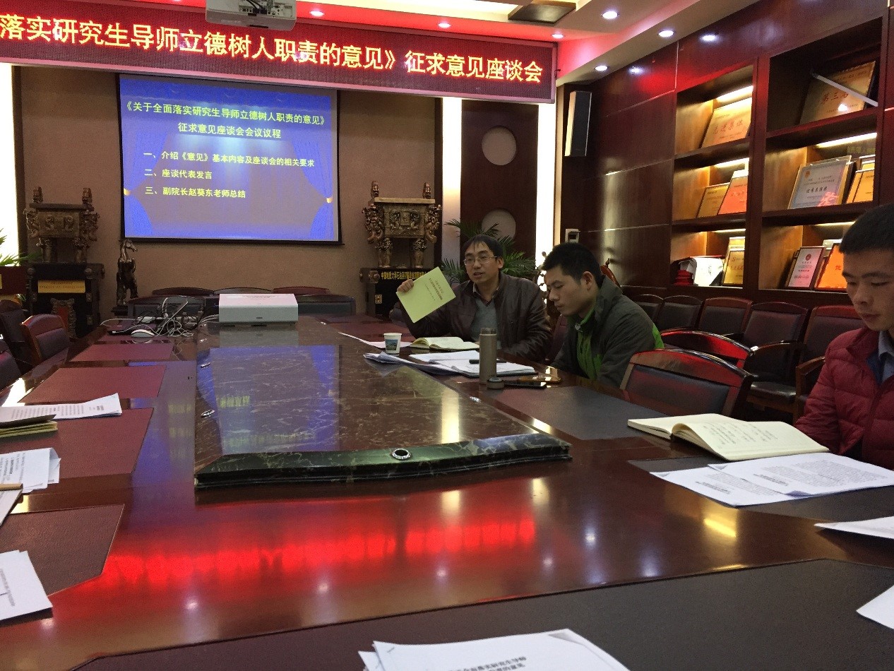 在主楼330举行《关于全面落实研究生导师立德树人职责的意见》征求意见座谈会。副院长赵葵东、研究生辅导员章帆及来自各个年级近30名研究生代表参加了此次座谈会。会议由研究生辅导员章帆主持,。