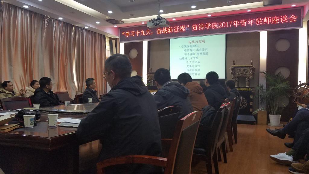 在主楼330会议室召开2017年青年教师座谈会,会议的主题是“学习十九大,奋战新征程”,学院领导、各三级单位代表及近五年新入职的教师参加了会议。