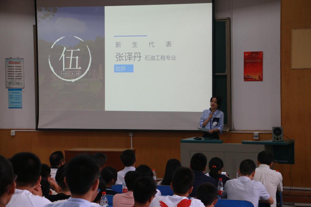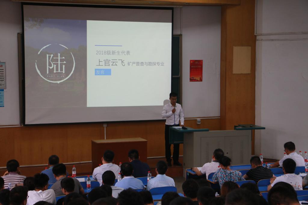 本科生新生代表张译丹发言,她表示将端正态度、好好学习;做好定位、智慧取舍;宽容换位,和谐相处,带着对知识的渴望和对新生活的向往在地大学习成长。研究生新生代表上官云飞发言,他表示研究生应以正确的价值取向和良好的道德水平,坚持不懈的追求科研梦想,仰望星空脚踏实地,树立与时代主题同心同向的理想信念,勇于担当时代赋予的历史使命。