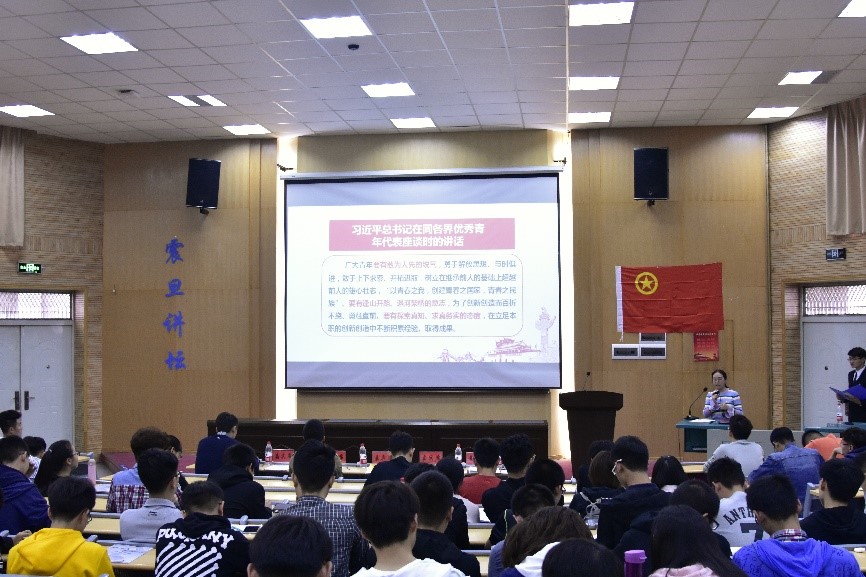 下午两点,活动准时开始,“我们是五月的花海,用青春拥抱时代。我们是初升的太阳,用生命点燃未来……”青春昂扬的团歌响彻教三楼。
