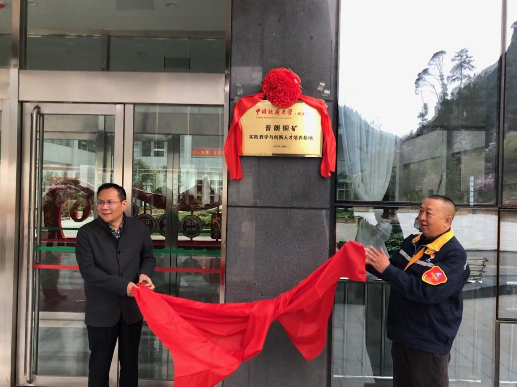 李宇凯、李剡兵共同为“普朗铜矿实践教学与创新人才培养基地”揭牌。
