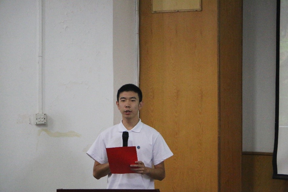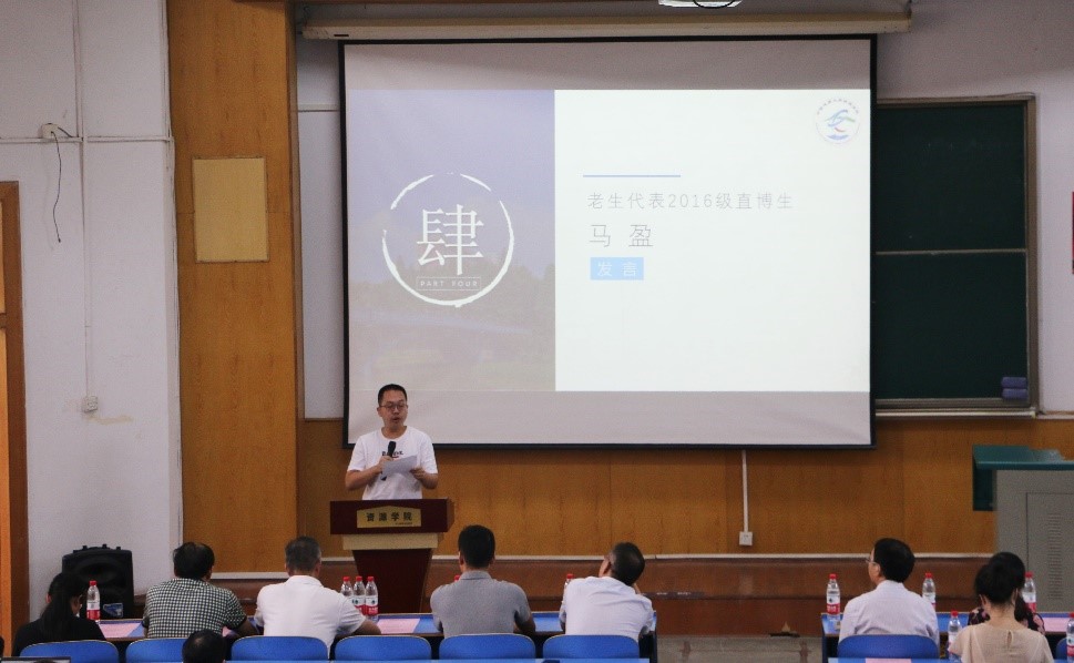 2016级直博生马盈用目标、创新和坚韧三个关键词向大家分享了自己研究生阶段的感悟。他表示好的研究是一个精彩的故事,需要时间的投入、系统的逻辑和真挚的感情,并希望在座的每一位同学都能书写自己的精彩故事。