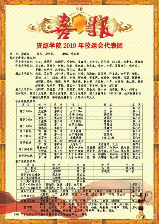 2019年校运会代表团喜报