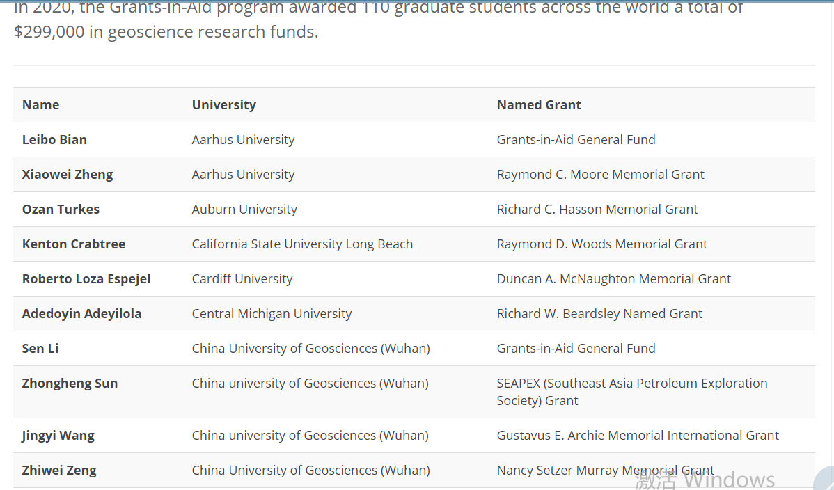 授予奖项网址://foundation.aapg.org/grants-in-aid-recipients