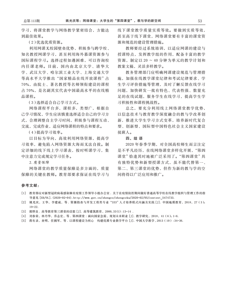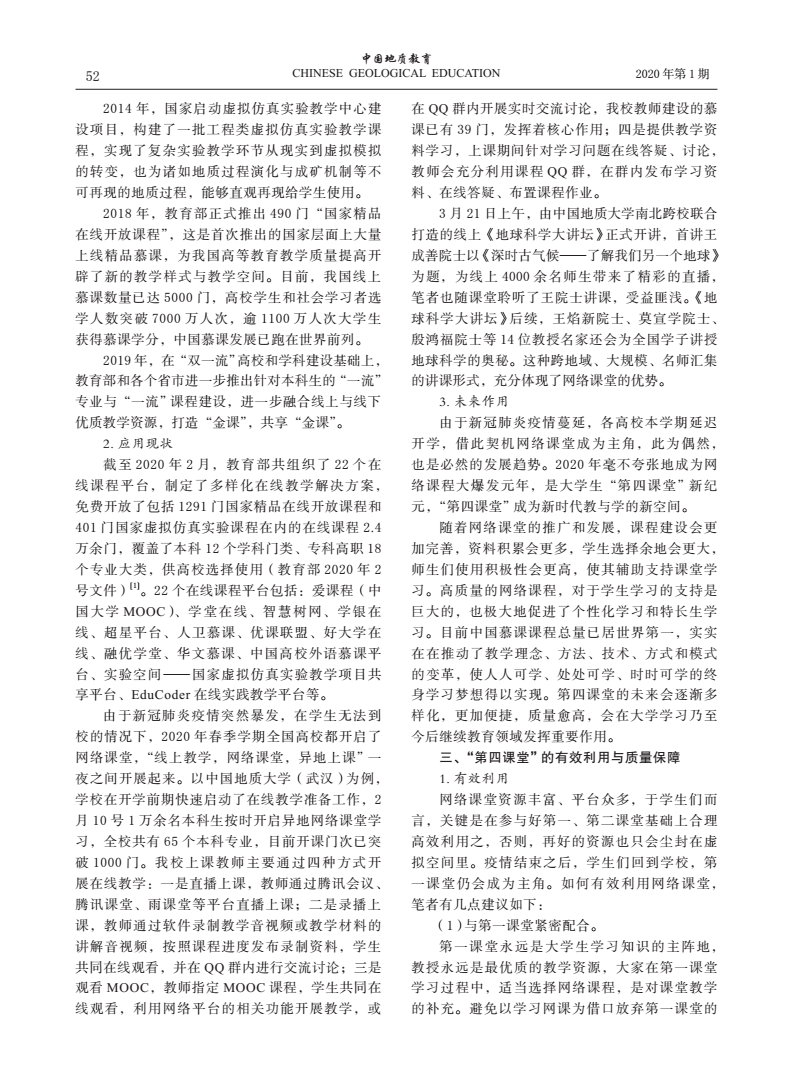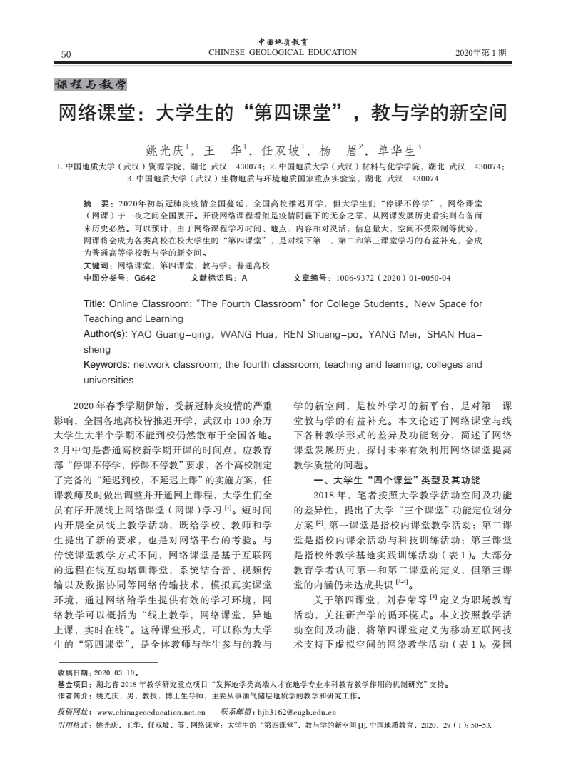 编者按:当前,新冠肺炎疫情蔓延势头得到有效遏制,防控工作取得阶段性成效,为深入贯彻落实习近平总书记关于统筹推进疫情防控和经济社会发展的系列重要讲话精神,在学校统一部署下,日本av在线看 全体教师克服重重困难,创新运用线上教学新形式,积极总结教学经验与成果。《线上教学进行时》第十期,让我们一同了解姚光庆,王华,任双坡等五位教师发表在《中国地质教育》期刊上的文章《网络课堂:大学生的“第四课堂”,教与学的新空间》。