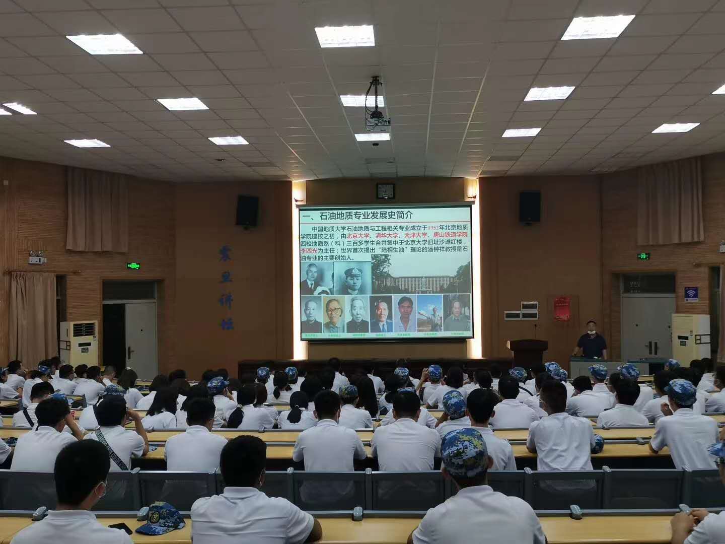9月18日晚,学院副院长沈传波教授、石油地质系陈红汉教授、周江羽教授、韩元佳教授在教三109教室,为2020级本科生作资源勘查工程新能源、油气方向专业报告,分析了石油工业的战略地位,勉励全体新生勤奋学习、刻苦钻研,立志成为著名的石油地质学家,为祖国石油工业贡献出自己的才华。