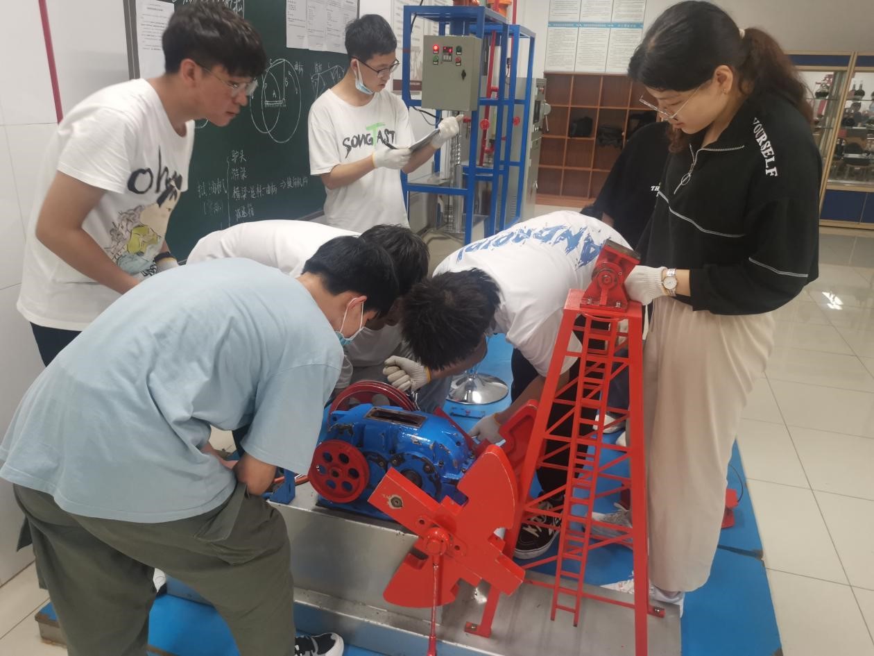 与中国石油大学(华东)石油工业训练中心共同制定。实训内容方面,涵盖了石油工业体系中的各项工艺流程;实训方式上,除了理论教学,还穿插了大量的实践操作环节;参训人员方面,除了石油工程专业全体学生,还遴选了4名对石油工程感兴趣的资源勘查工程专业优秀学生。