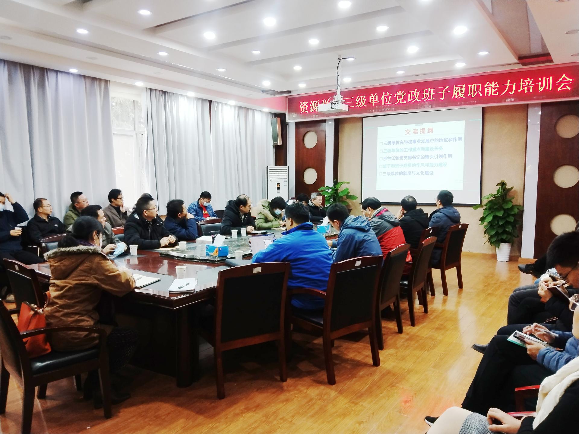 三级单位党政班子履职能力培训班第四期(第7讲)培训在学院330会议室举行。院长李建威作专题授课,院领导班子、各三级单位党政班子成员及院直全体人员参加培训。副院长赵葵东主持会议。