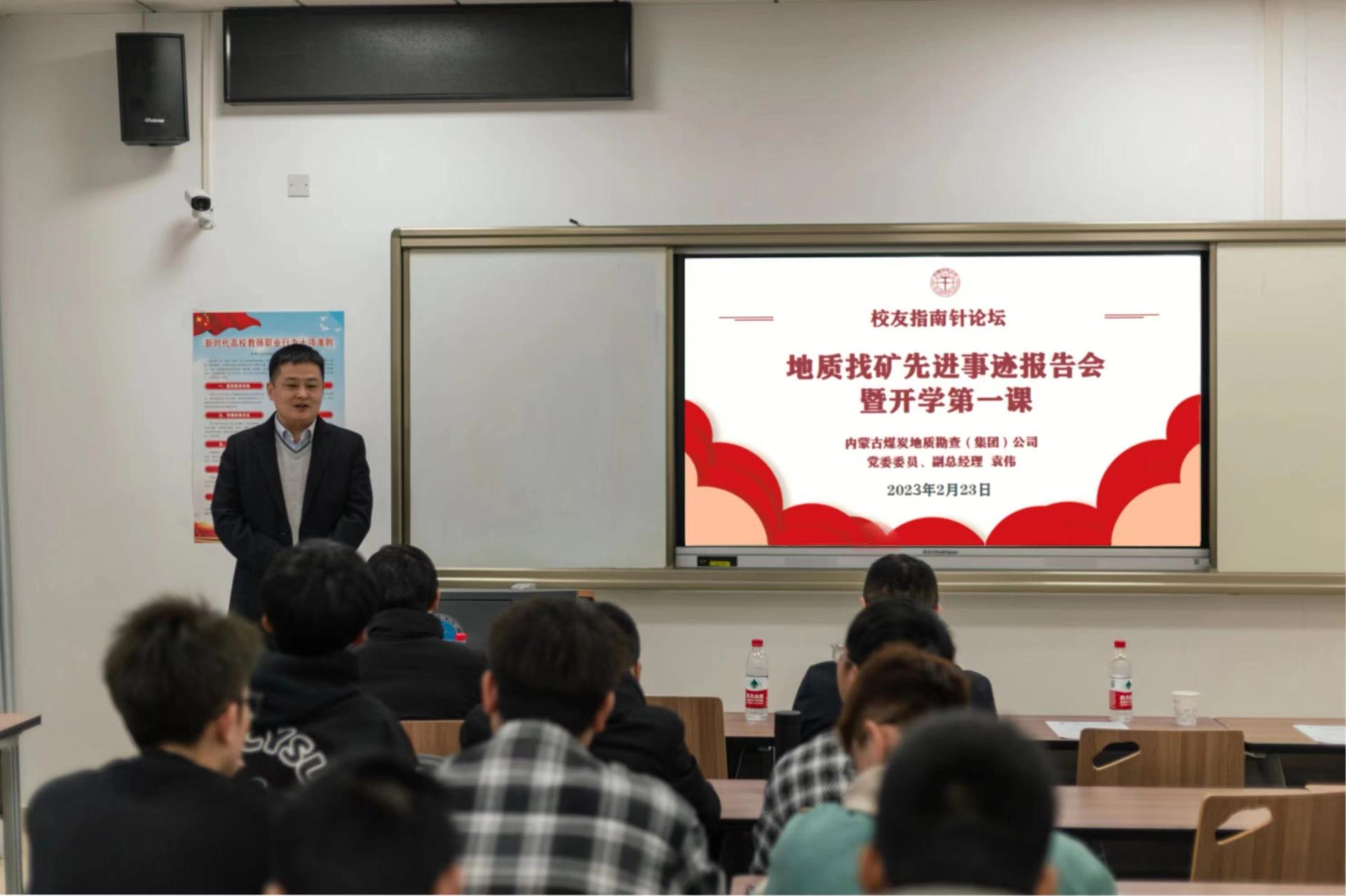邀请新疆地矿(投资)集团吐鲁番金源矿冶有限责任公司党委书记、董事长、总经理马小平校友和内蒙古煤炭地质勘查(集团)公司党委委员、副总经理袁伟校友走进“开学第一课”,讲述为国找矿、地质报国故事。