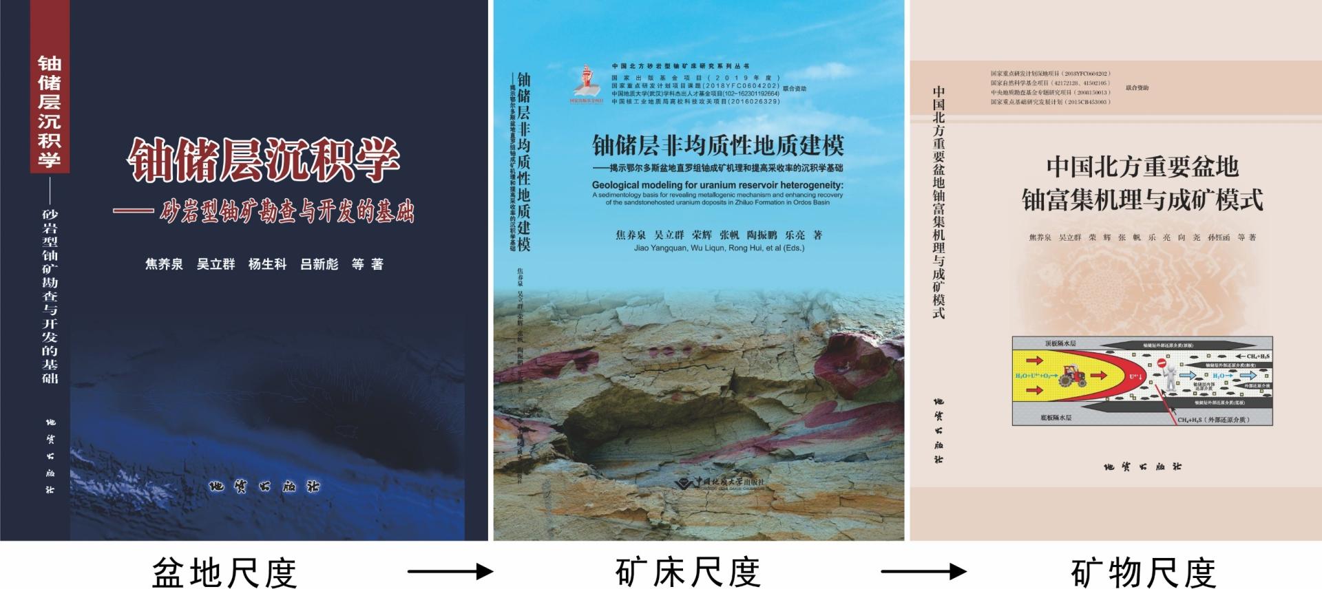 二级教授焦养泉在2000年率先组建的一支专注于沉积学与铀矿地质学交叉研究的创新团队,多年来以“服务国家目标、促进学科建设、培养紧缺人才”为宗旨,取得了一系列显著成果,创建并发展了一套实用性强、受到业内广泛应用的铀储层沉积学理论技术体系,并将团队集体智慧的结晶融入到了一部又一部的专业著作中。这些专著在为我国铀矿勘查提供理论指导的同时,也记录着焦养泉教授与团队成员在研究领域持之以恒为真理而求索的每一步脚印。