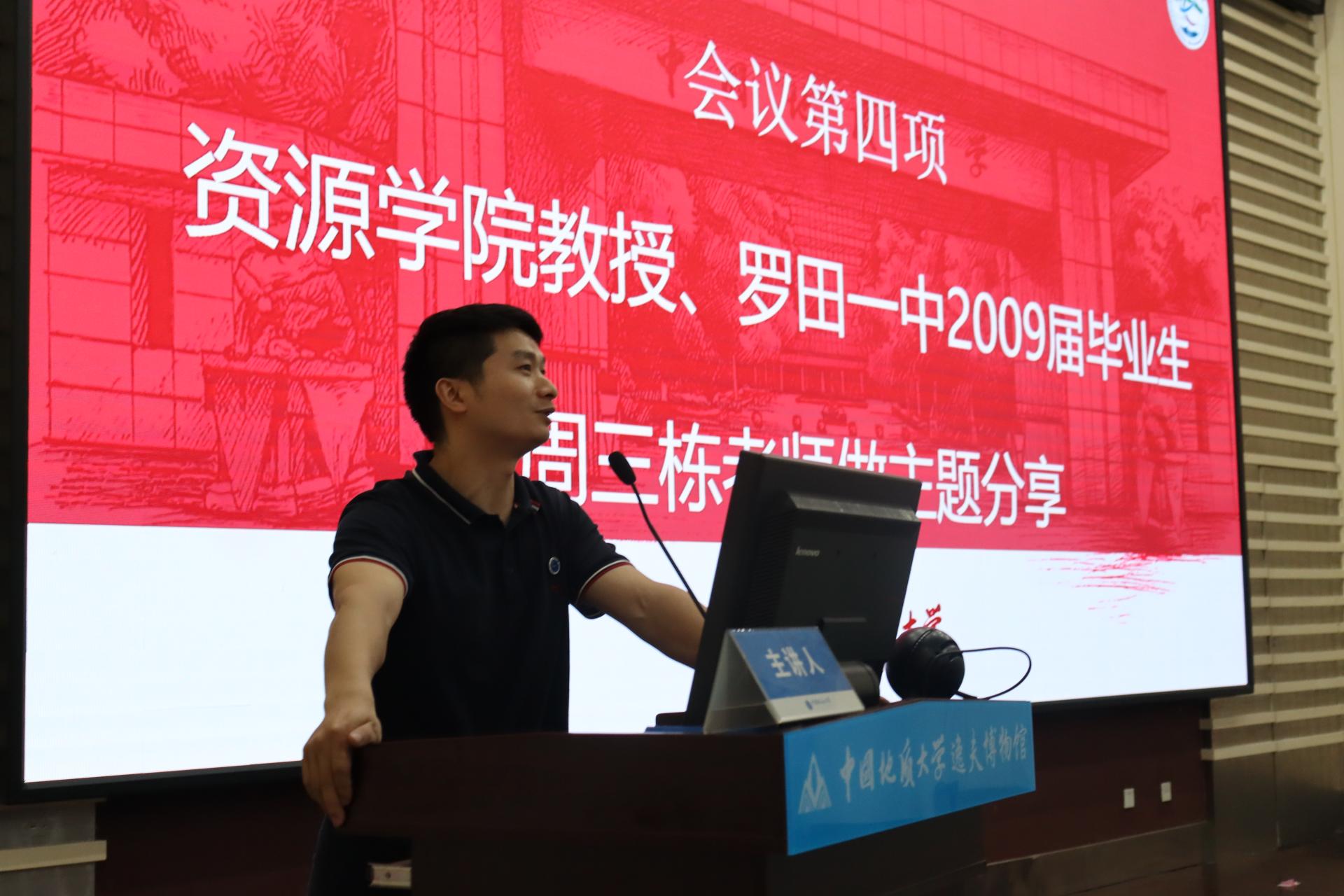 教授、罗田县第一中学2009届毕业生周三栋做《奋进·成长》主题分享。他深情回忆了在罗田一中的求学成长经历,讲述了自身成长的奋斗经历,并寄语罗田一中学弟学妹:要树立远大志向,珍惜时光,不负韶华,在培养兴趣中踏实学习,通过拼搏奋斗实现青春梦想。
