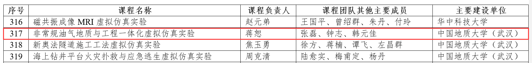 徐思煌教授牵头申报的“石油及天然气地质学”课程获批线下一流课程,蒋恕教授牵头申报的“非常规油气地质与工程一体化虚拟仿真实验”获批虚拟仿真实验教学一流课程。