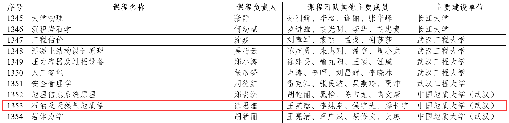共有“矿床学”“聚煤盆地沉积学”“石油及天然气地质学”“大冶铁矿矿床学虚拟实习”“非常规油气地质与工程一体化虚拟仿真实验”等5门国家级一流本科课程。