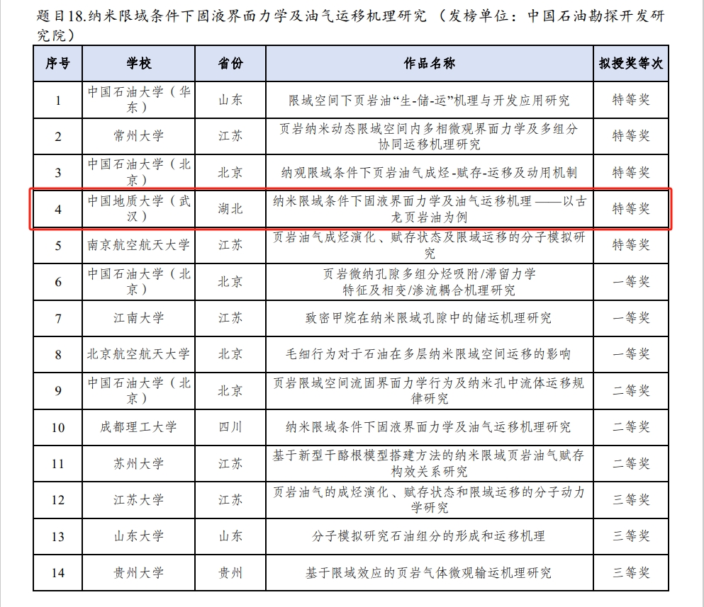 获奖选题:《纳米限域条件下固液界面力学及油气运移机理——以古龙页岩油为例》