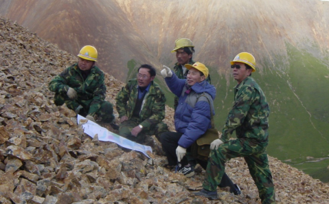 郑有业教授在海拔5100米的巨龙矿区指导研究生及技术人员开展野外工作