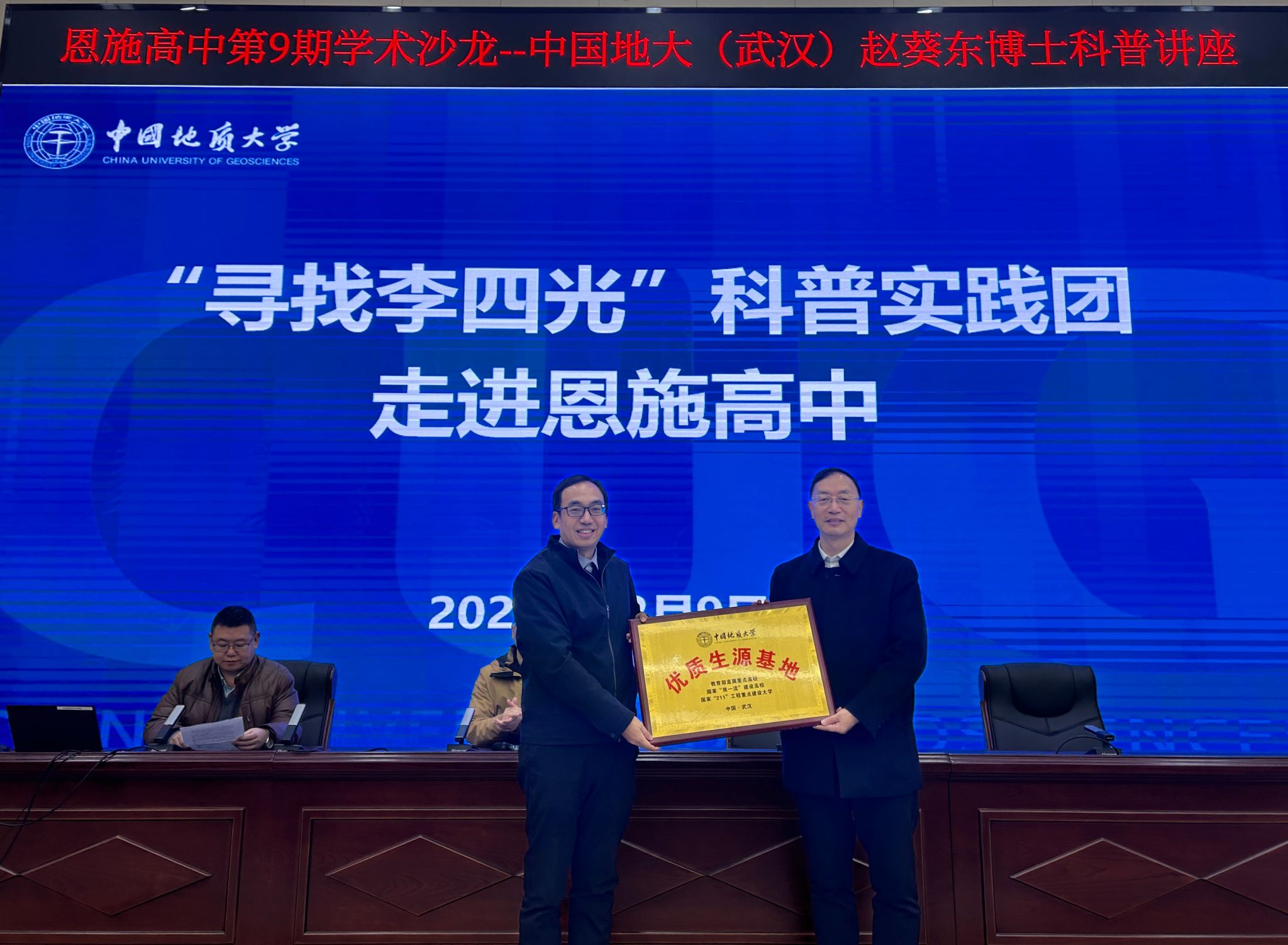 优质生源基地授牌仪式”。赵葵东代表学校为恩施高中授予“优质生源基地。”