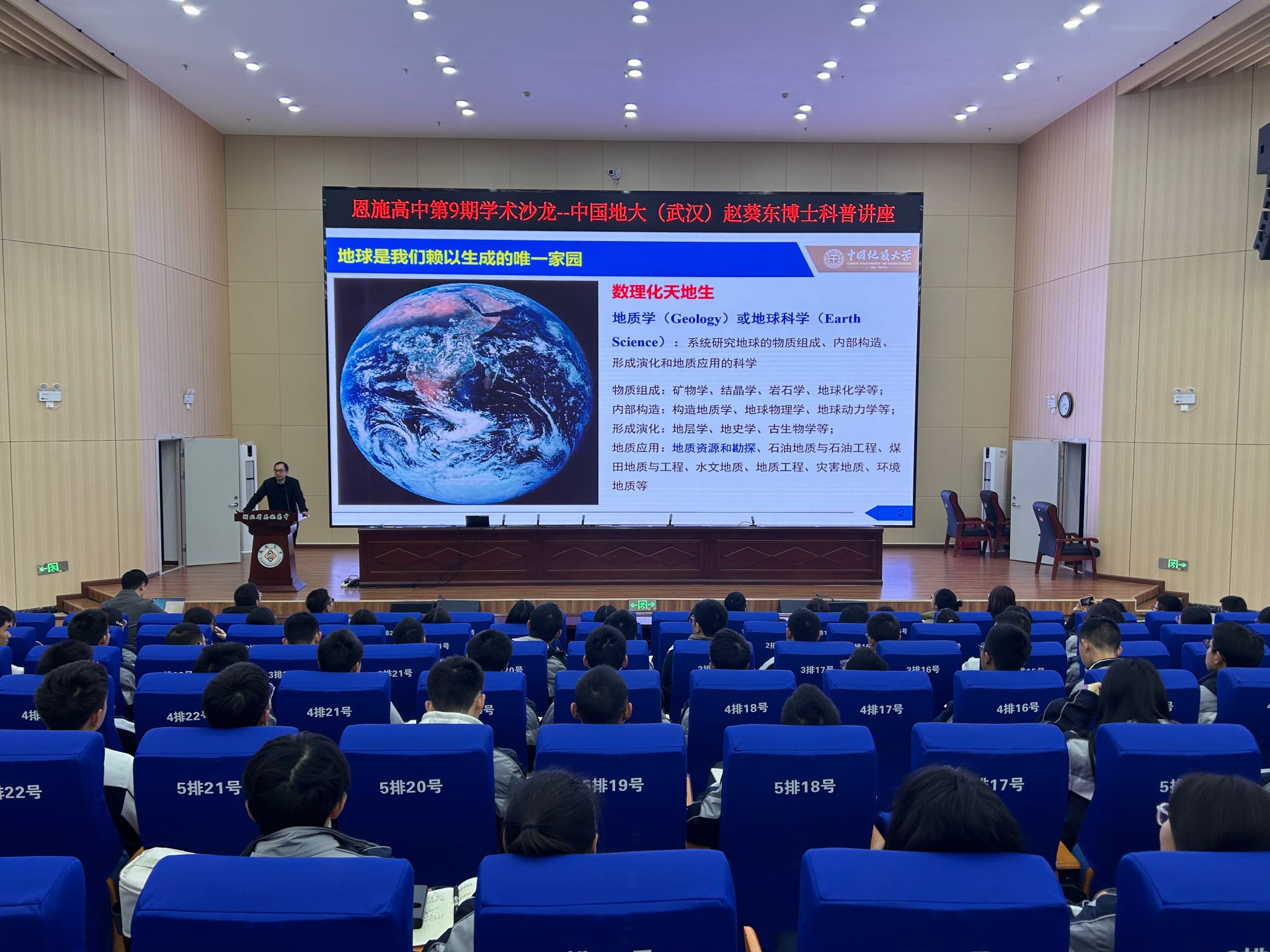 优质生源基地”,讲授“矿产资源概论”大学先修课。恩施高中党委书记、校长谭斌,教务处主任李绍贵等参加上述活动。