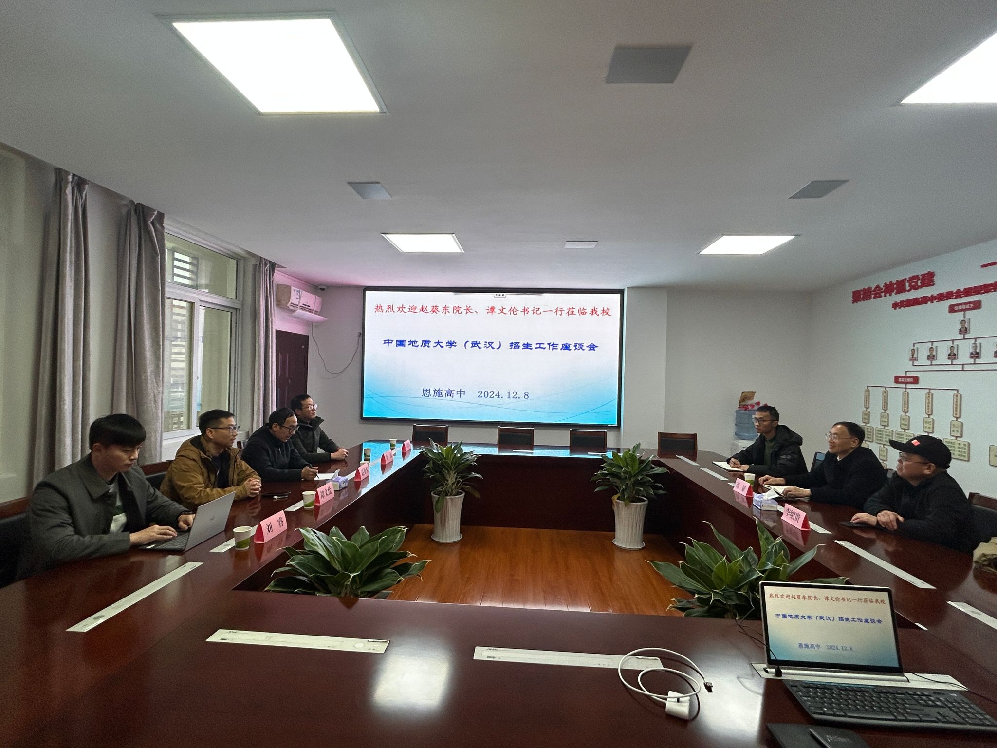 座谈会上,谭斌对赵葵东一行表示热烈欢迎,并介绍了恩施高中发展历程、特色育人举措及往届高考录取情况。