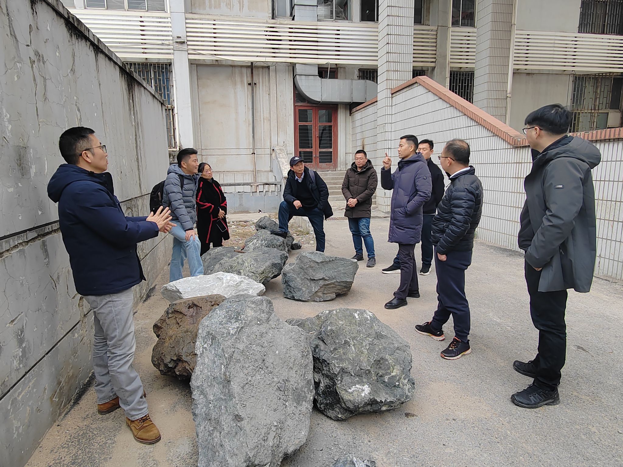 课程组老师集体调研从大冶铁矿新采集并运回的岩矿石大标本,并对标本中的地质现象、教学服务目标和课程建设展开广泛而有益的讨论。