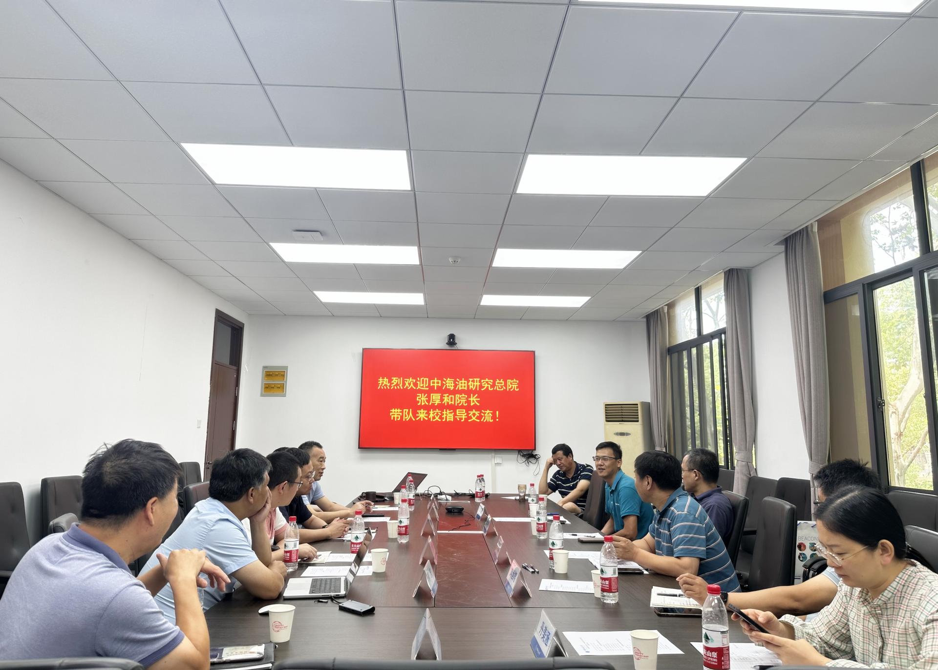 高复阳对张厚和一行来校调研表示欢迎,并从学校历史沿革、师资队伍、学科方向、科学研究、科技创新基地等方面介绍学校整体情况。他指出,双方面向非常规、新能源勘探开发的合作,既是学术研究的趋势,也是应对现实能源挑战的重要途径。他希望,双方建立常态化合作机制,畅通合作共商沟通渠道,搭建合作平台,聚焦非常规、新能源勘探开发,强化重大项目交流合作,持续推动科教融合、产教融合,共同为国家能源事业的发展贡献力量。
