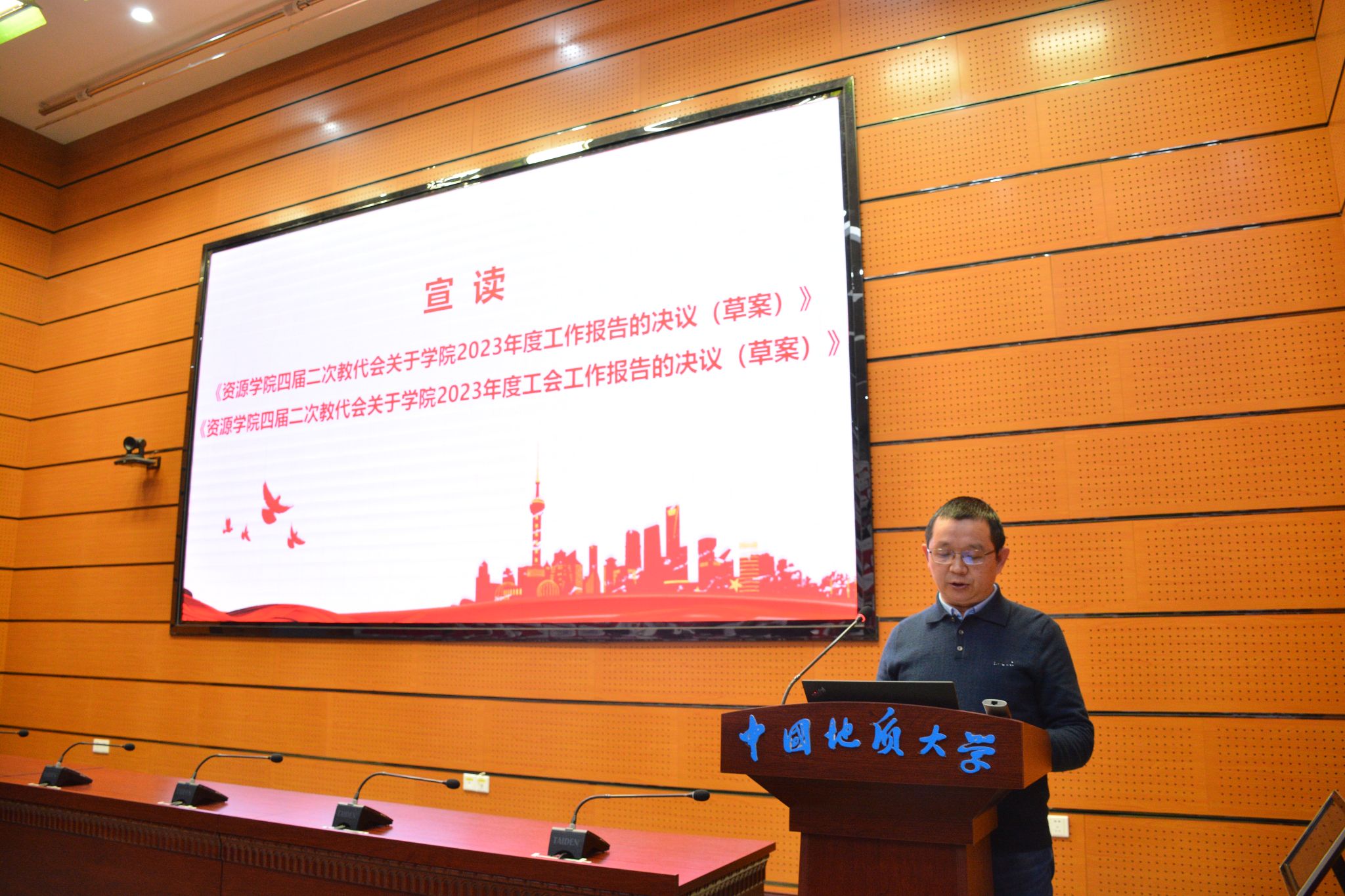 四届二次教代会关于学院2023年度工会工作报告的决议(草案)》,与会代表表决通过了两个决议。