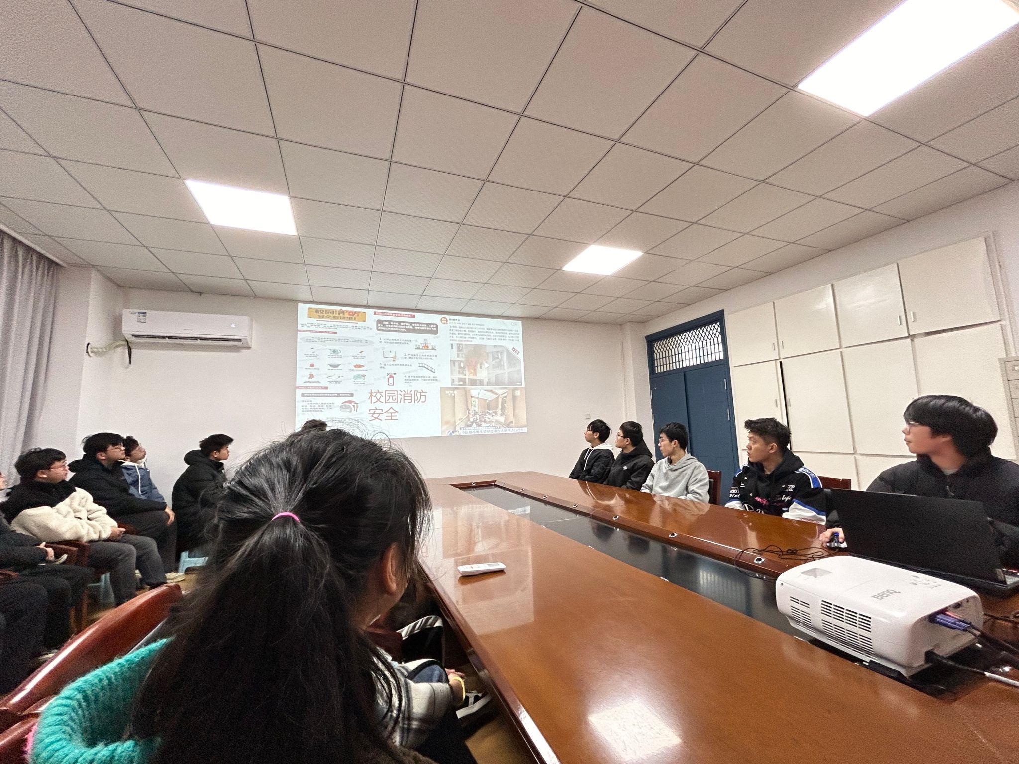 班级安全与生活委员通过主题分享、互动课堂等形式在班级进行校园安全教育宣讲,内容包括交通安全、消防安全、人身安全、财产安全等方面,借助身边的案例重点提醒防骗反诈和防火安全,提醒班级同学做好宿舍安全自查,增强校园安全基本常识,熟悉常用消防设施使用方法。