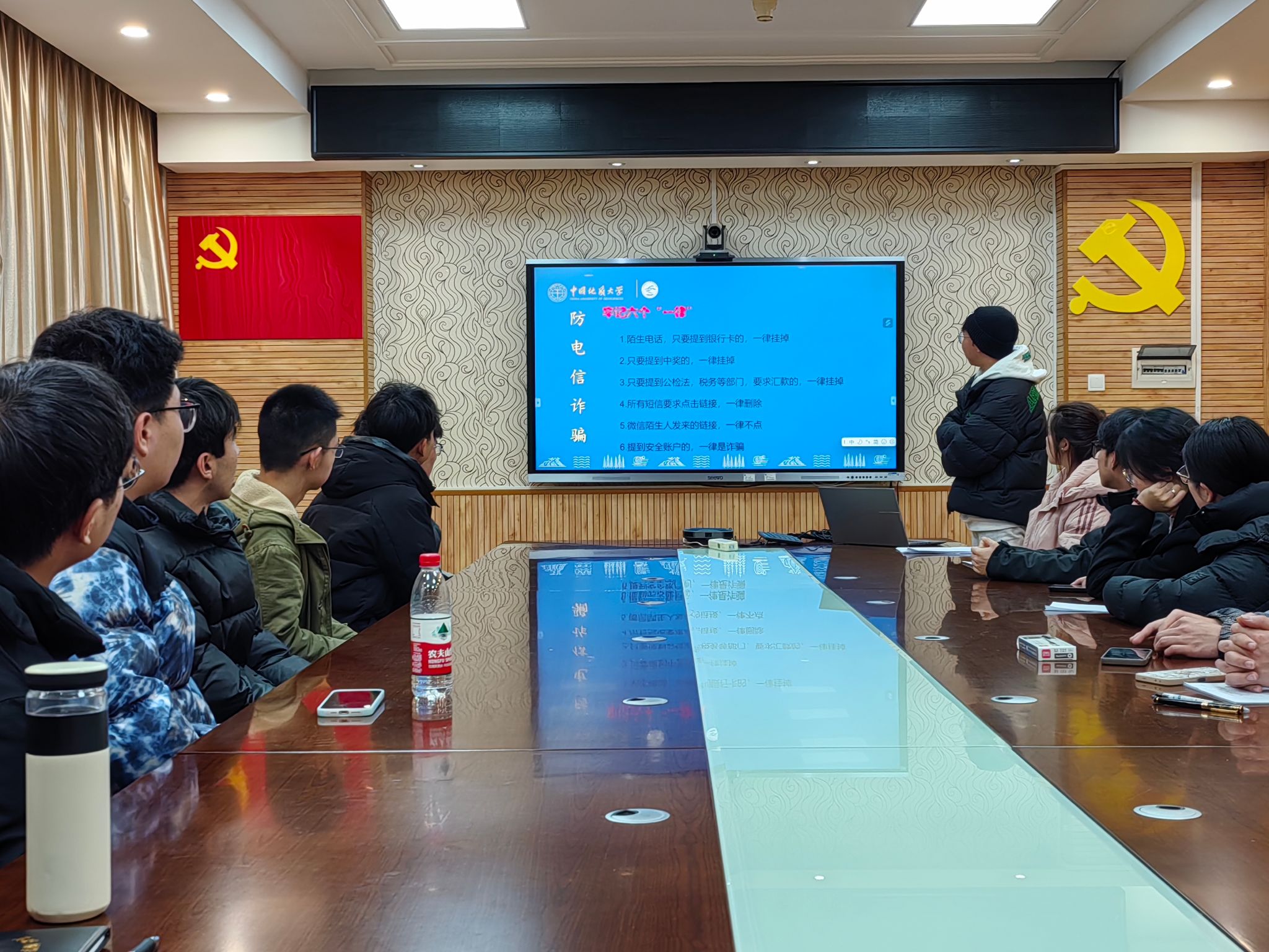 为增强学生安全意识,学院开展2024年春季学期安全教育专题活动。学院年级大会邀请安全保卫部治安科彭红进、魏景明两位老师,结合典型校园火灾、诈骗案例,向同学们阐述了掌握防火防骗知识的必要性。