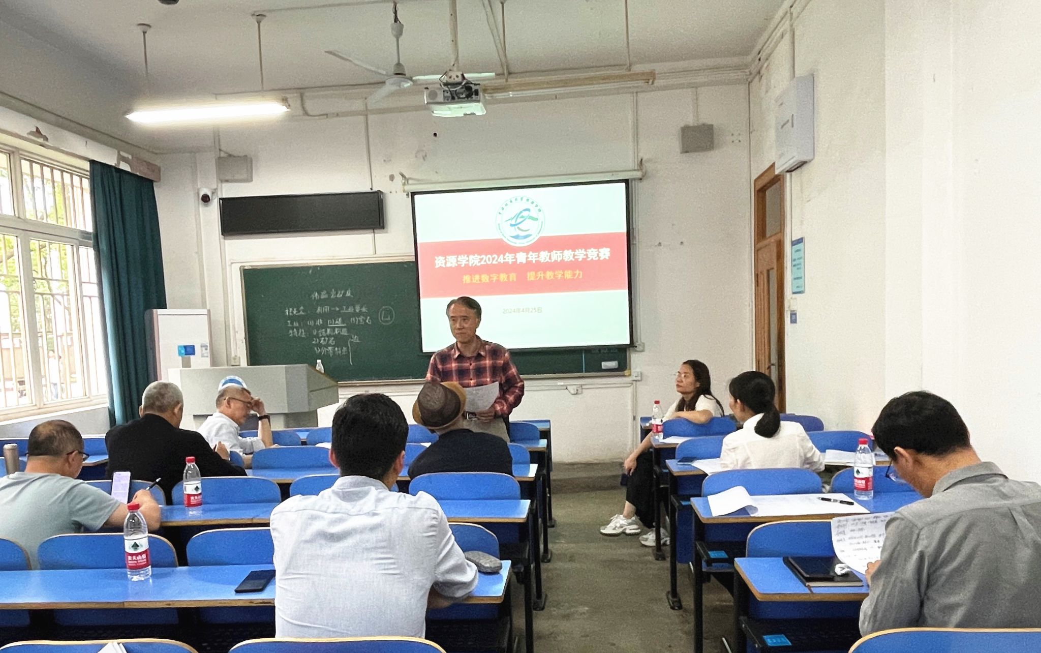 青年教师的执教能力,培养青年教师严谨笃学、爱岗敬业的精神,以“推进数字教育,提升教学能力”为主题的学院青年教师教学竞赛于4月25日下午在教一楼108举行。本次竞赛由国家教学名师龚一鸣教授担任组长并主持,湖北省教学名师徐思煌教授、学校教学督导马立祥教授以及日本av在线看