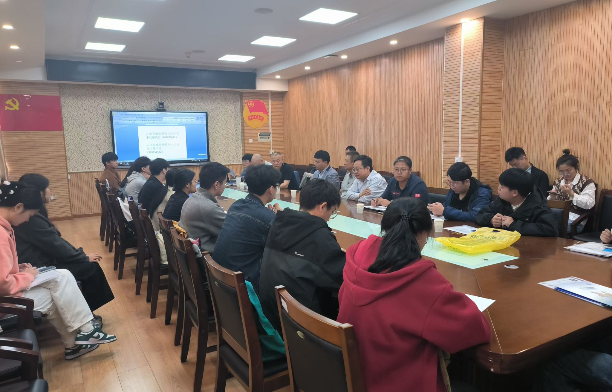 调研交流,举行产学研合作座谈会,开展人才招聘宣讲。学院党委书记高复阳,院长严德天,副院长李占轲,资源科学与工程系、资源信息工程系负责人和相应学科方向教师代表参加会见和座谈交流。云南省地质调查局党委委员、副局长刘红雨,局办公室、地质环境监测院、国土资源规划设计研究院副院长、组织人事处等单位负责同志参加座谈和招聘活动。