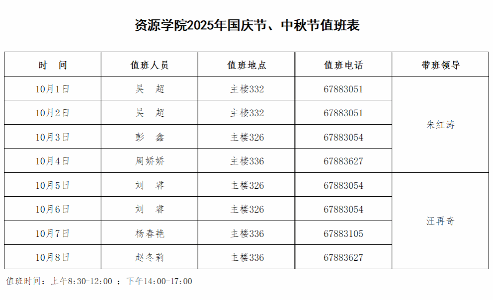 日本av在线看 2025年国庆节、中秋节值班表