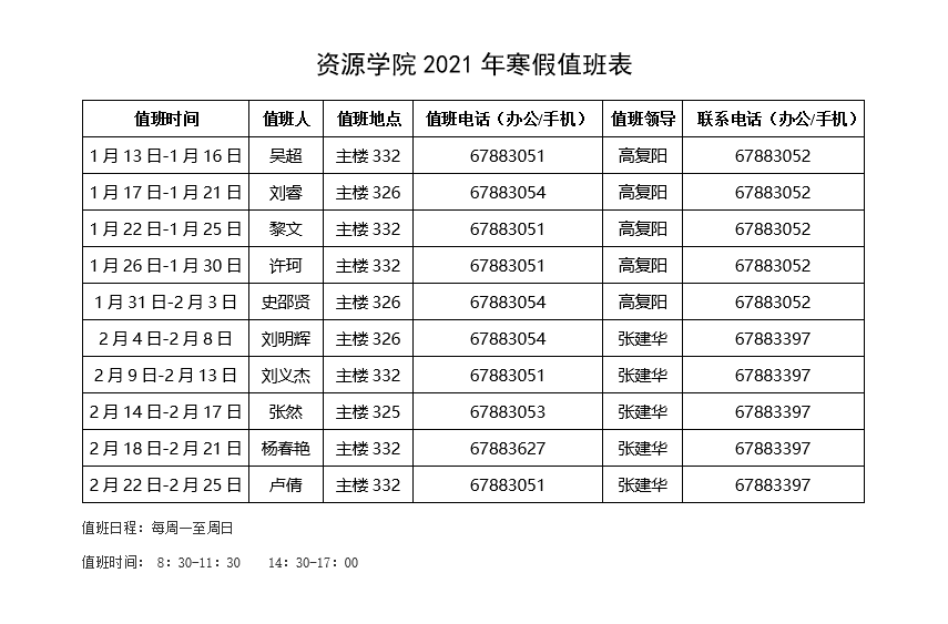 日本av在线看 2021年寒假值班表