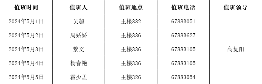 2024年“五一”假期值班表