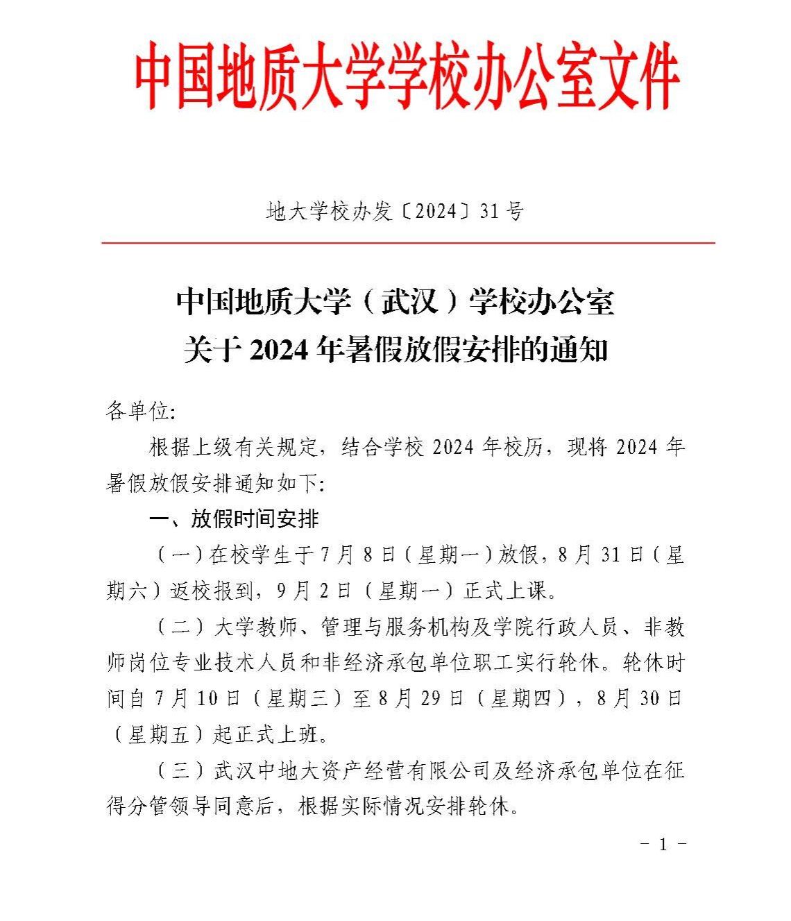 日本av在线看 (武汉)关于2024年暑假放假安排的通知