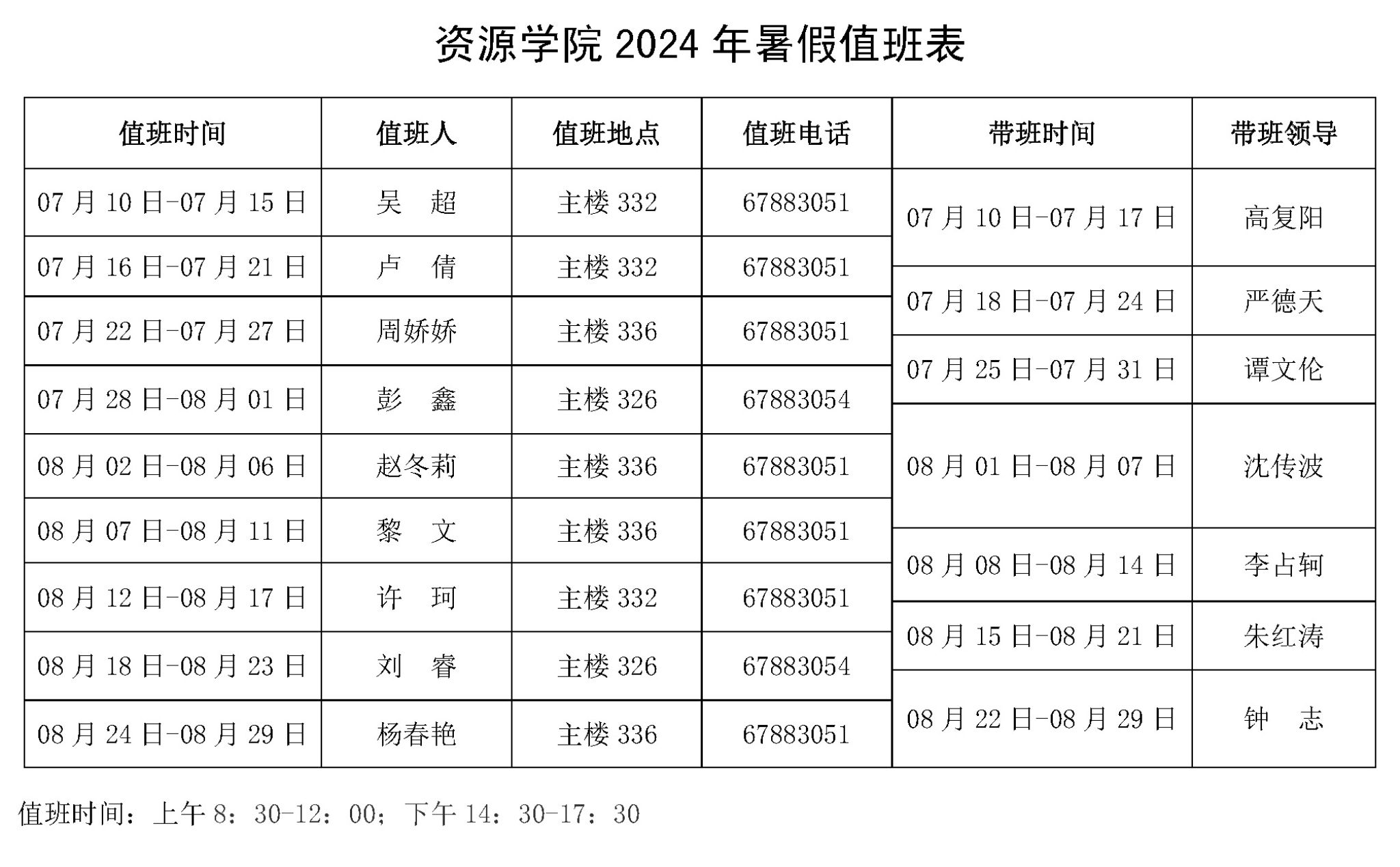 日本av在线看 2024年暑假值班表