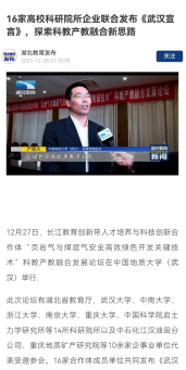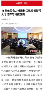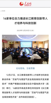 承办的长江教育创新带人才培养与科技创新合作体“页岩气与煤层气安全高效绿色开发关键技术”科教产教融合发展论坛12月27日在学校召开,大会得到了教育部、湖北省的大力支持和悉心指导。光明日报、人民网、中国新闻网、中国科技网、湖北日报、长江日报等多家媒体对此次会议进行了详细报道: