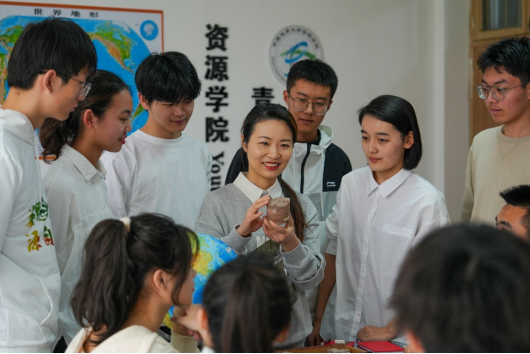 勤勉敬业,躬耕三尺讲台。陈思认真对待每一节课,作为省级线上线下混合式一流本科课程《沉积相与沉积环境》负责人,她仔细打磨课程,拓展教学内容,改进教学方法,创新“形象式-互动式-启发式”讲授方法,深入推进课程思政建设,让课堂不仅有益更加有趣。她注重实践育人,担任咸宁通山野外教学实习副队长,参与美国犹他州野外实践教学踏勘及路线建设,参与编写双语野外实习指导书,带学生进行地质认知实习和野外专业实习。承担“一带一路”国际留学生全英文课程,让他们在中国学习到前沿理论知识。她在学校开设了《旅游地质资源》《地质之美》系列通识教育选修课,开展地学科普,激发学生专业学习热情。积极参加教学比赛,先后获得湖北省第八届高校青年教师教学竞赛一等奖、第三届全国大学青年教师地质课程教学比赛一等奖和学校第十二届青年教师教学竞赛特等奖、第三届教师教学创新大赛特等奖,展现出年轻教师良好的执教能力。