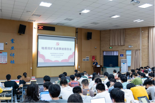 举办地质找矿先进事迹学习报告会暨“指南针”校友论坛。紫金矿业集团多宝山铜业股份有限公司总经理张立中校友,学院党委副书记谭文伦,资源科学与工程系党支部书记付乐兵、副主任李占轲,校友与社会合作处丁苗苗,教师代表宫勇军、熊索菲,辅导员霍少孟、彭鑫,2021级、2022级本科生参加报告会。报告会由资源科学与工程系教师党支部、矿床学研究生党支部联合承办,付乐兵主持报告会。